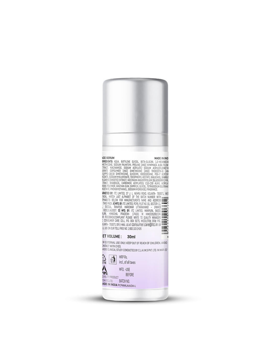 Aqua, Butylene Glycol, Beta-Glucan, 1,2-Hexanediol, Dimethicone, Sodium Palmitoyl Proline (and) Nymphaea Alba Flower Extract, Niacinamide, Sodium Acrylate/Sodium Acryloyldimethyl Taurate Copolymer (and) Dimethicone (and) Trideceth-6 (and) PEG/PPG-18/18 Dimethicone, Glycerin, Isododecane, PEG-7 Glyceryl Cocoate, Sodium Hyaluronate, Tocopheryl Acetate, Bakuchiol, Bambusa Vulgaris (Shoots) Extract, Vaccinium Angustifolium (Blueberry) Fruit Extract, Bisabolol, Carbomer, Acrylates/ C10-C30 Alkyl Acrylate Cross Polymer, Xanthan Gum, Caprylyl Glycol, Tetrasodium Glutamate Diacetate, Phenoxyethanol, Sodium Hydroxide, Fragrance.
